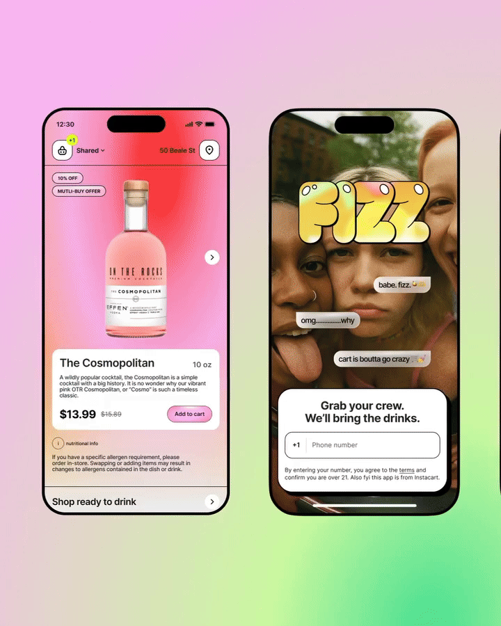 THE GROUP-CHAT-MEETS-DRINK-DELIVERY APP. Fizz is where your roommate drops tequila into the cart and you respond with 😱😍👏. And limes. All the limes. Fizz is going in on drinks knowing everyone (even Kyle) will actually split the tab. So when you start a party cart, you get to order together but only pay your share.